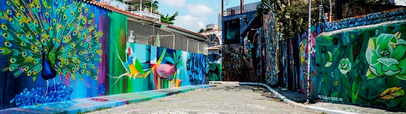 O Beco do Batman localizado no centro do parque da Vila Madalena, um estúdio a céu aberto pelas cores e grafites exuberantes que se transformam em um corredor de arte e lazer.