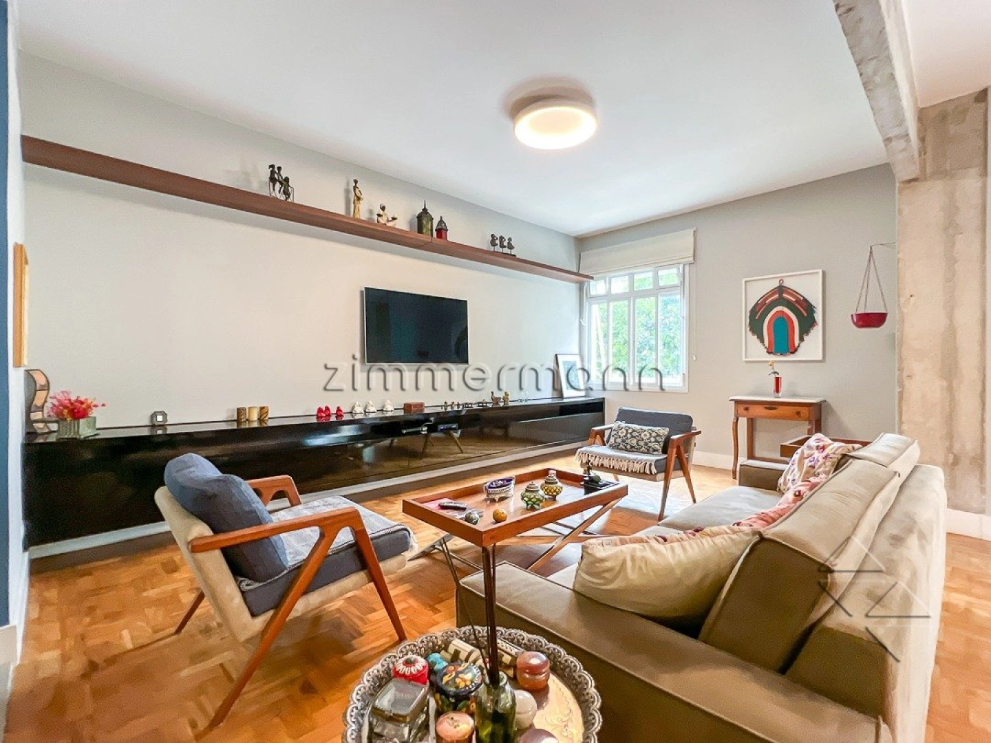 Apartamento à venda na Santa Cecilia. O imóvel possui amplo living para 2 ambientes, integrado a um terraço, além de lavabo, cozinha e área de serviço com banheiro, bem ventilada e funcional. Os acabamentos em concreto aparente e tijolo à vista trazem um toque moderno ao ambiente.