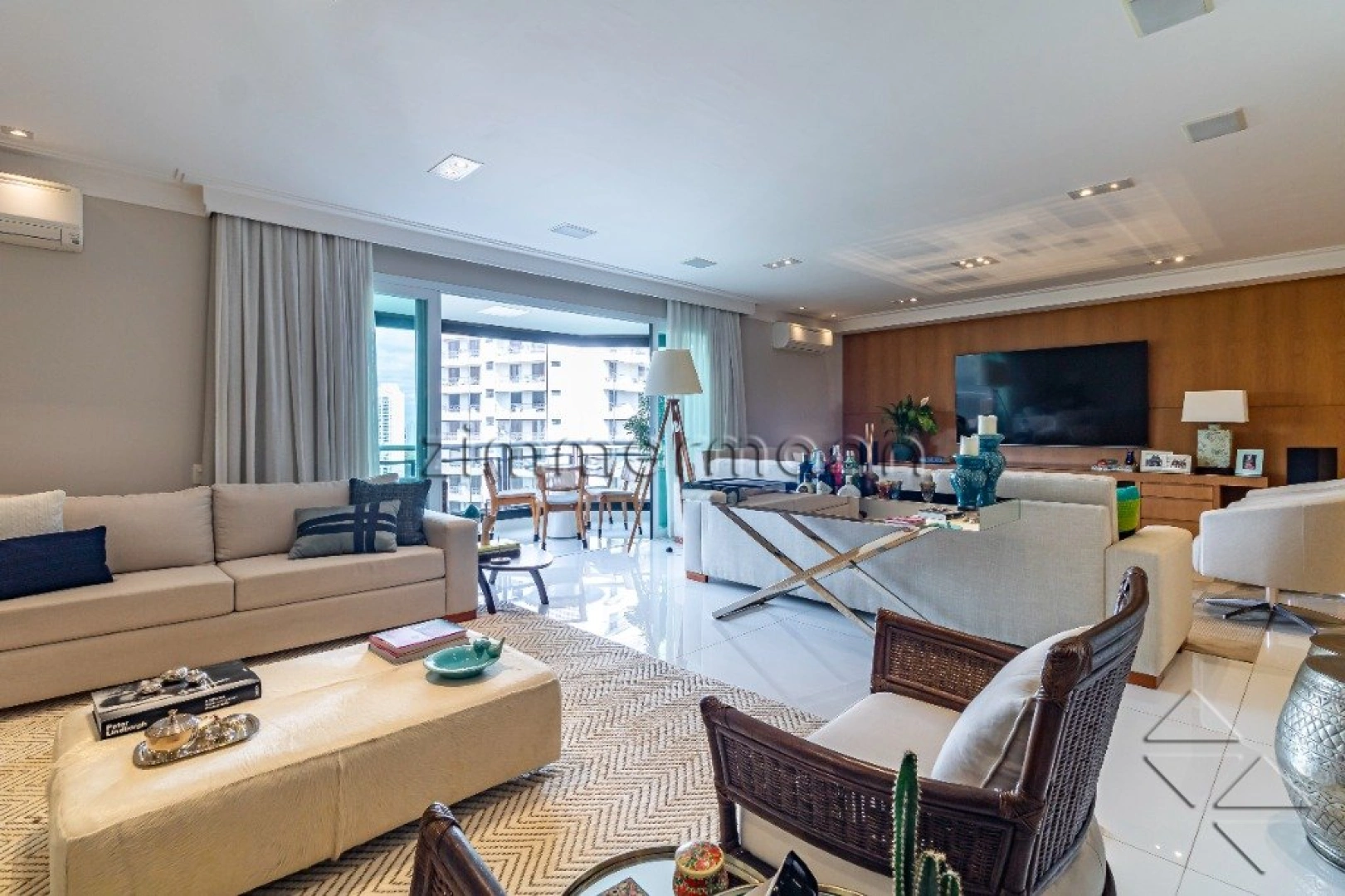 Apartamento com acabamento excepcional, piso em madeira, teto rebaixado, detalhes em gesso com luminárias embutidas, living para 3 ambientes, lareira, excelente iluminação natural por conta do acesso à varanda, belíssima vista para área verde.