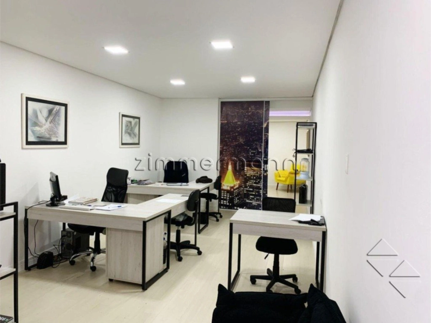Conjunto comercial com 80m², com banheiro, salas e cozinha.
